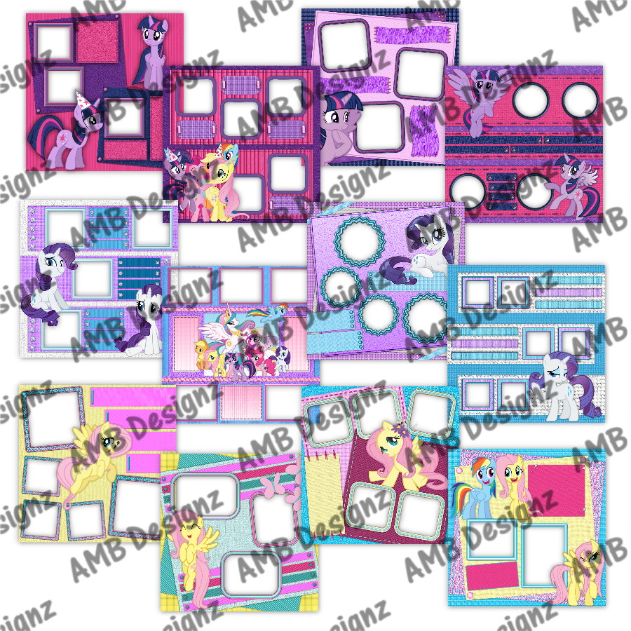 I am as excited as Pinkie Pie with a party cannon to add this new huge 24 Premade quick page album to the store. My daughter was just as excited to see these pages being created, she loves My Little Pony and everything pony related. These pages include layouts of the 6 main pony characters The leader Princess Twilight Sparkle and her friends Pinkie Pie, Rarity, Rainbow Dash, Applejack and Fluttershy.