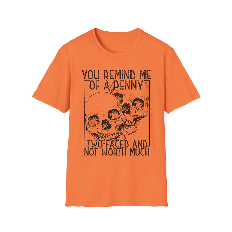 "Remind Me of a Penny" Funny T-Shirt with Quirky Skull Design, Graphic Tee